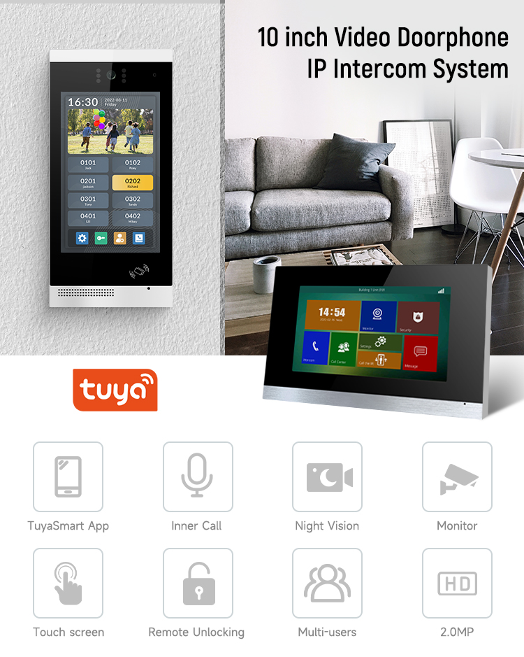 10.1-inch high-definition monitor with online graphic and video playback. Full duplex voice intercom is similar to a regular phone intercom. It also connects the security system and provides elevator linkage. With this device’s advanced and secure Access Control System, your life will be more convenient, faster, and safe.